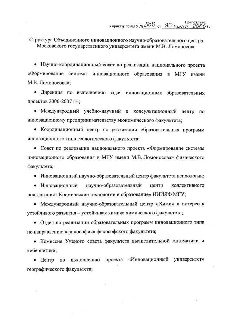 Приказ по МГУ № 508 от 30 июня 2006 года